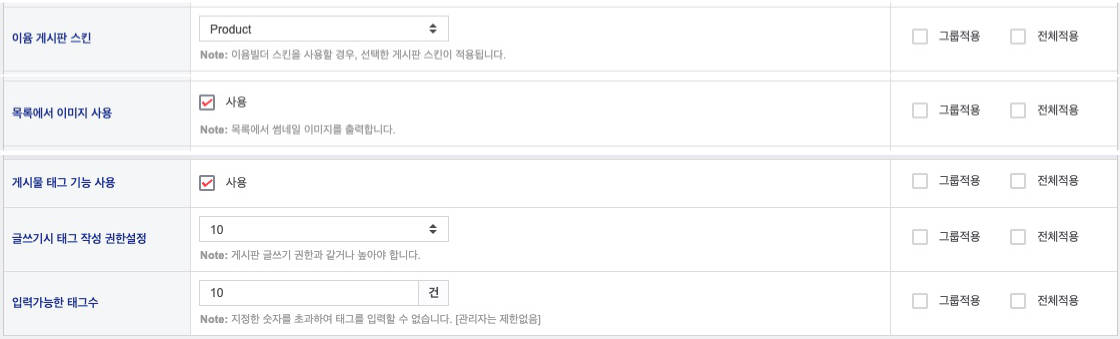 • 게시판 설정(관리자 - 게시판관리)
