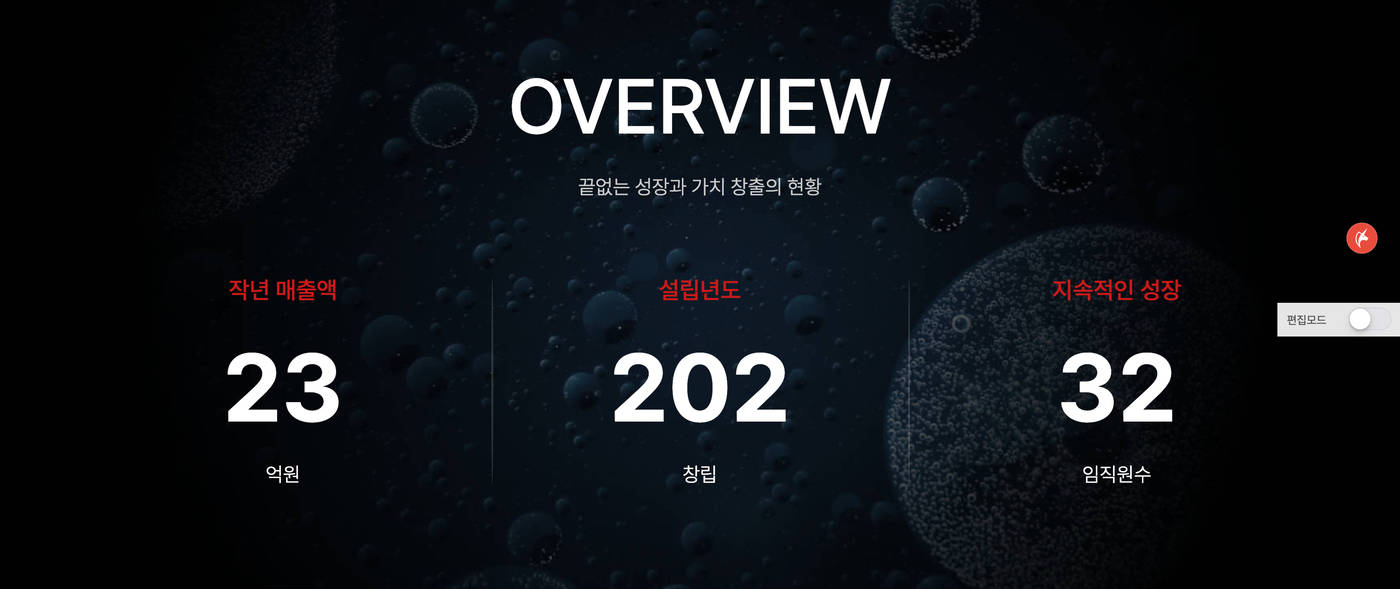 • 메인과 서브페이지에서 편집모드를 통해 손쉽게 내용 및 이미지 수정이 가능합니다.